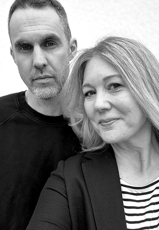 Johan Larsson har en bakgrund som journalist med fokus på den digitala teknikutvecklingen. Susanne Hammarberg har lång erfarenhet som chef inom kommunikation på polisen. Susanne och Johan träffades på journalistutbildningen och bor tillsammans i Nacka utanför Stockholm. Omstart är deras debutroman.